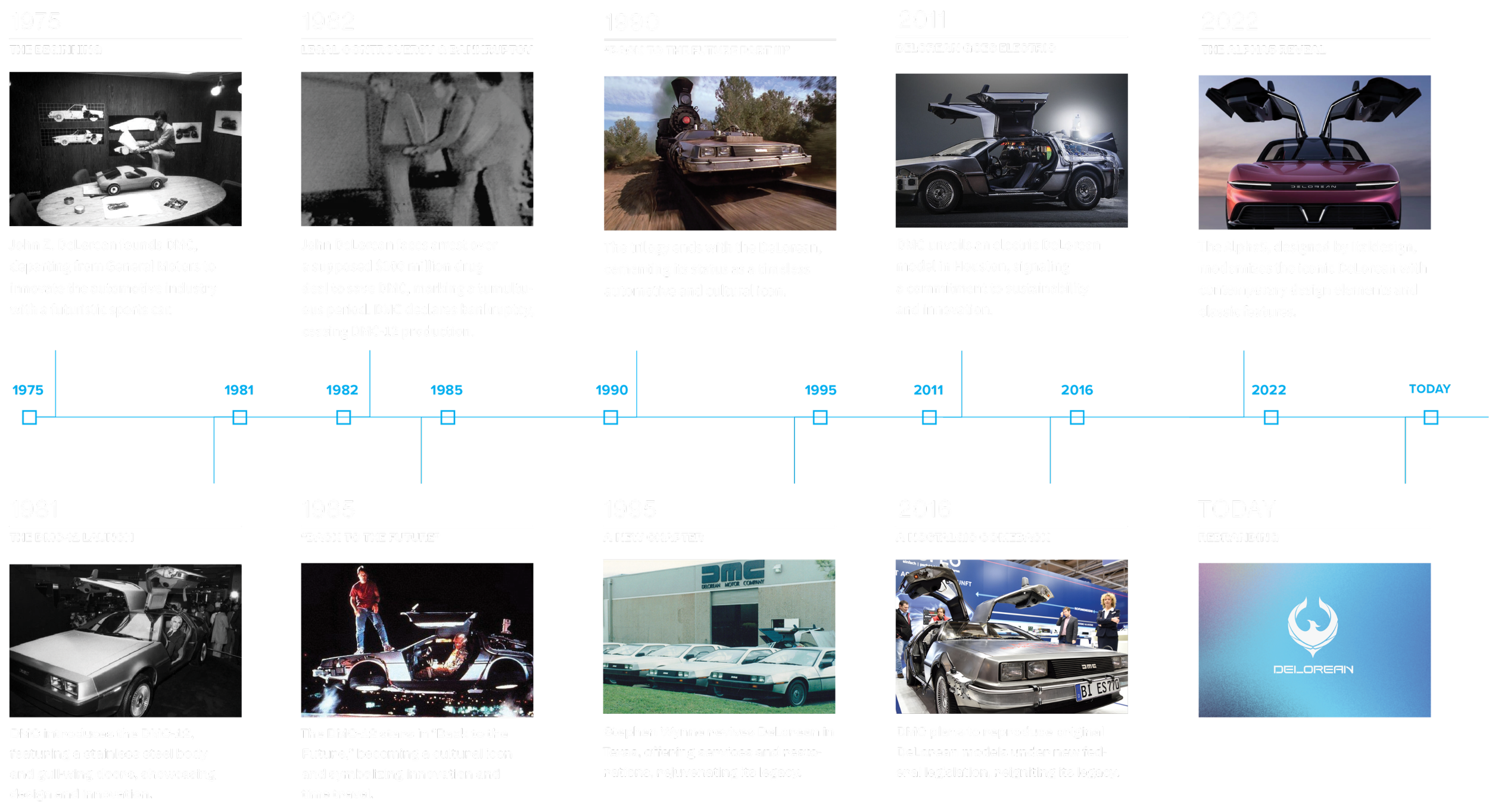 DeLorean Motor Company (DMC) started in 1975 by John DeLorean who wanted to make a unique sports car, the DMC-12. This car stood out because of its cool design, metal body, and doors that opened upwards. Even though it became famous from the “Back to the Future” movies, the company had money problems and had to shut down in 1982 after John DeLorean got into legal trouble. But the DeLorean car is still loved today, thanks to a company in Texas that fixes up and sells old DMC-12s, keeping John DeLorean’s dream alive for car fans everywhere.
